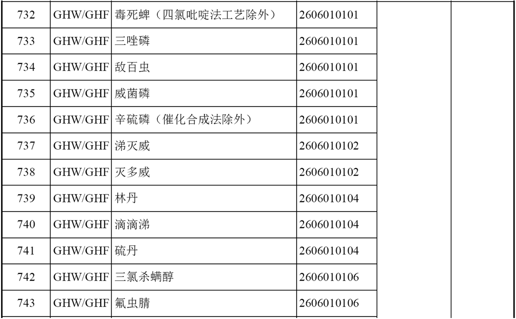 環(huán)境保護(hù)綜合名錄(2021年版) 中有關(guān)農(nóng)藥部分: