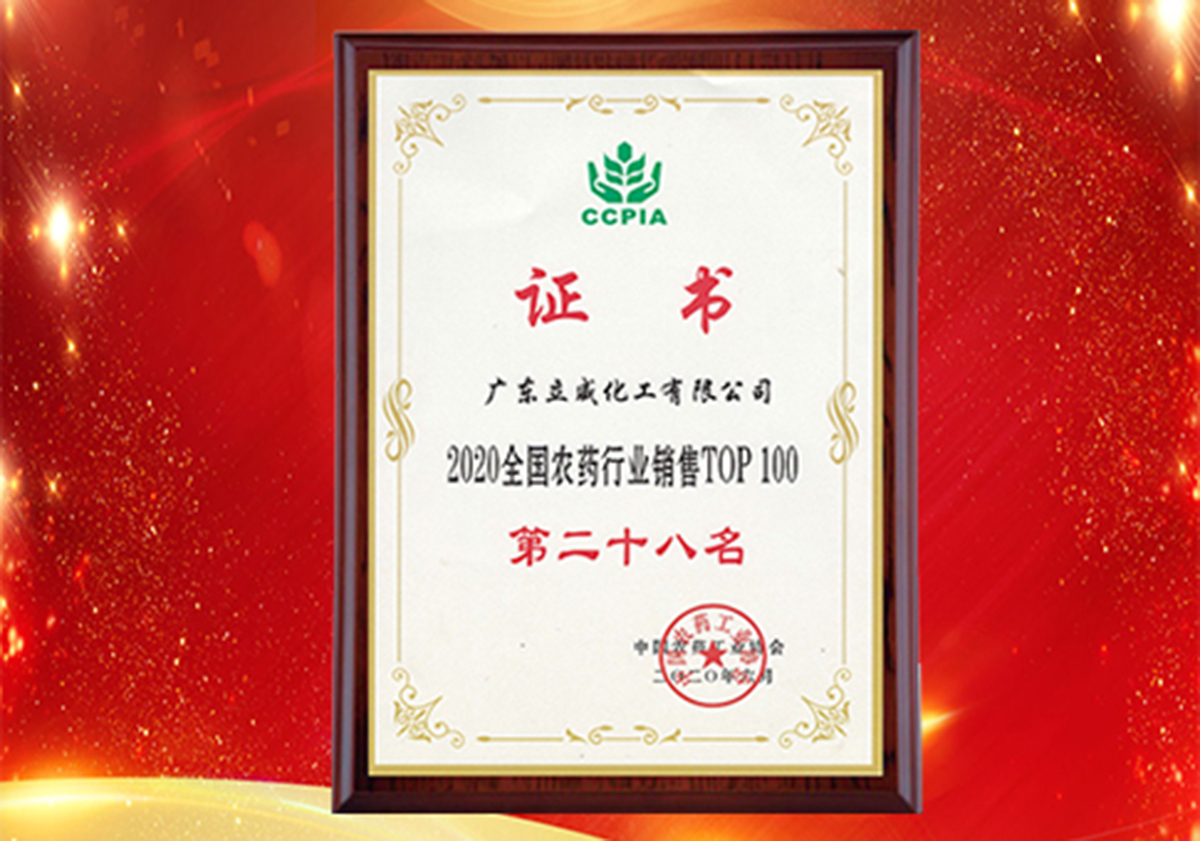 熱烈慶祝立威榮獲2020年中國(guó)農(nóng)藥銷(xiāo)售百?gòu)?qiáng)第28名!
